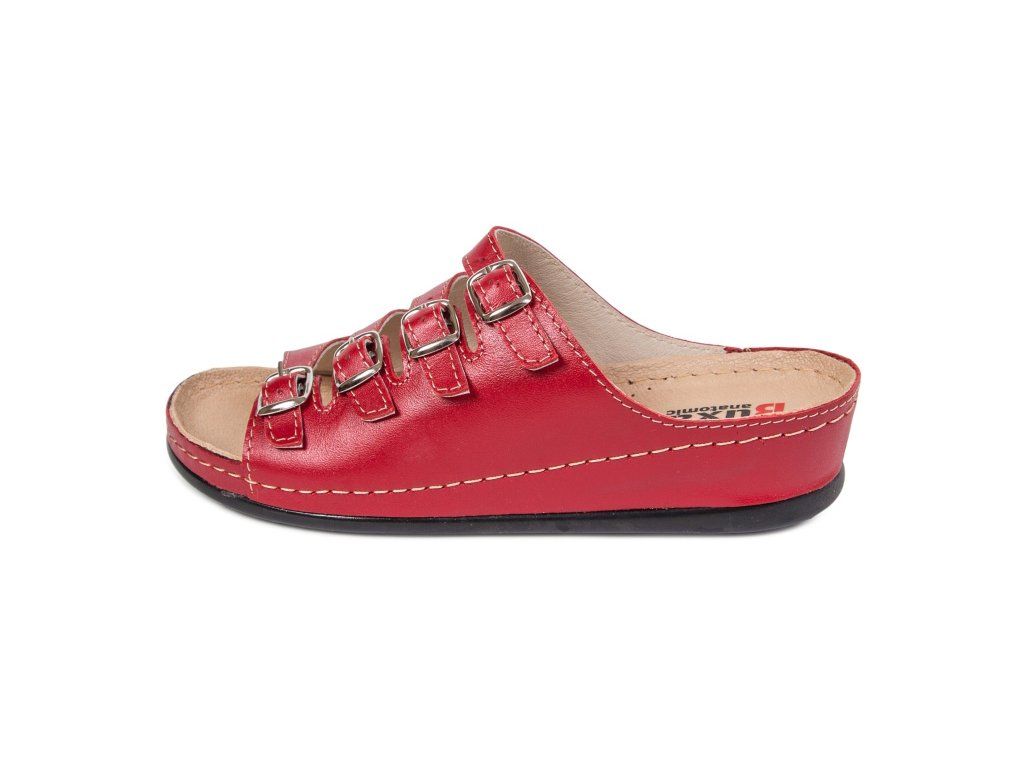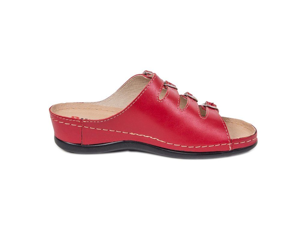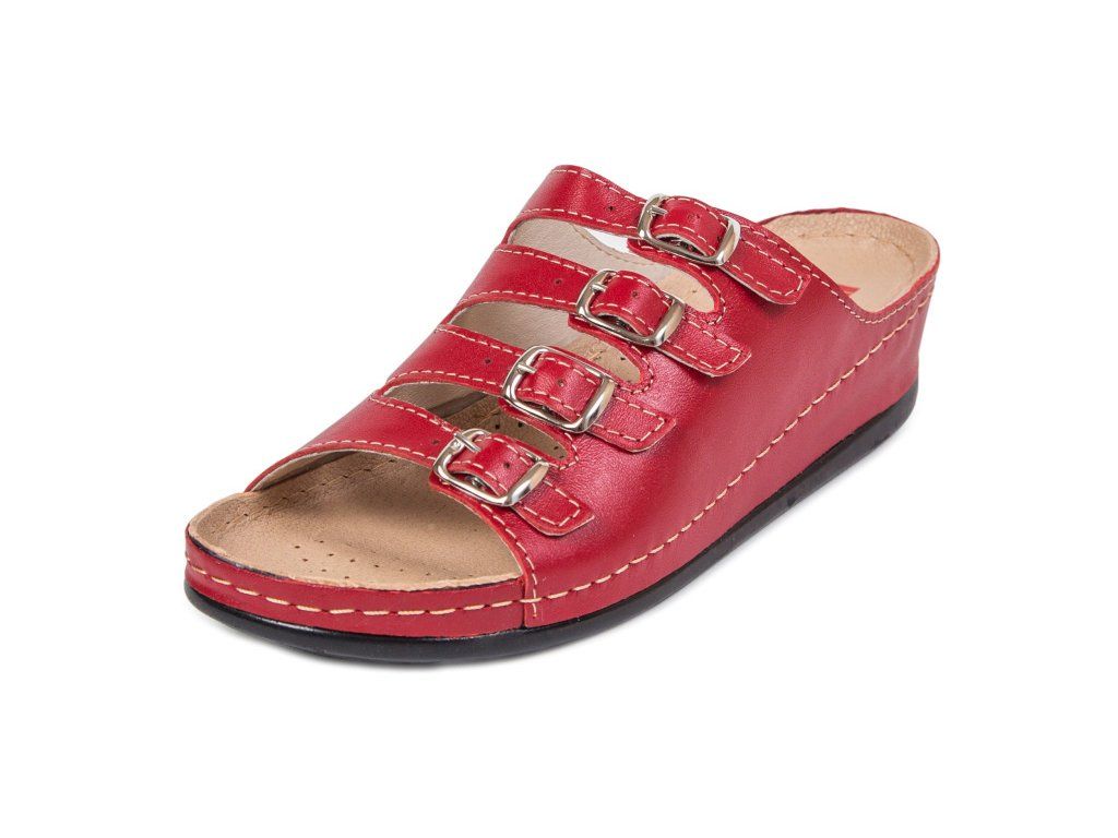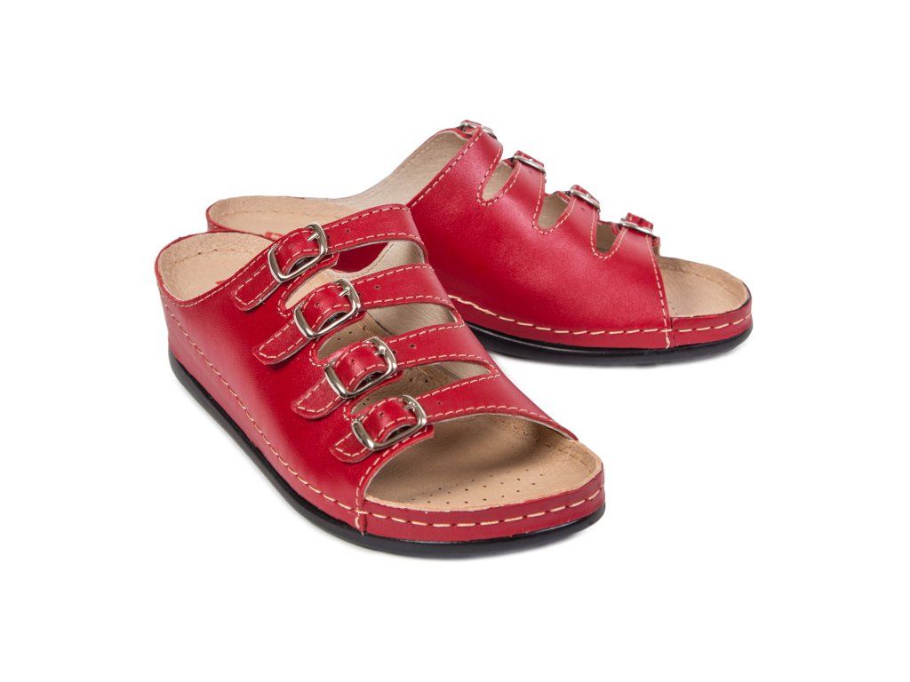 Női, teljes egészében bőrből készült egészségügyi papucs. Ez a modell puha, anatómiailag kialakított talpbetéttel rendelkezik, amely megtámasztja a láb haránt- és hosszboltozatát, valamint a lábujjakat is. Kiváló minőségű, sima felületű valódi bőrből készült. Hosszú évek tapasztalata alapján tervezték dolgozó szakemberek számára. Tartós, biztonságos és kényelmes papucs, amely megfelel a professzionális lábbelikre és védelemre vonatkozó európai előírásoknak. Egészségügyi, munkavédelmi, otthoni és hétköznapi nyári viseletként is ideális. Egész napos viselésre is megfelelő.