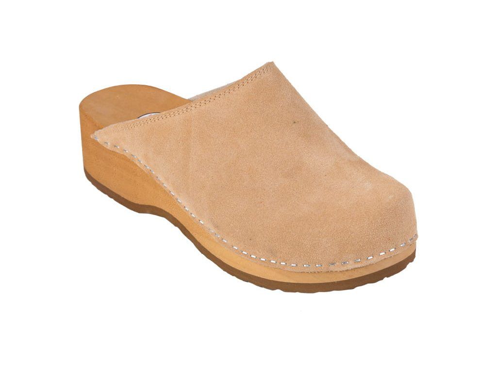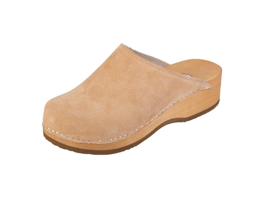A kényelmes egészségügyi klumpa valódi bőrből és könnyű hársfából készült. A formázott talp segít korrigálni a lúdtalpat. A fa talpbetét használat közben nem deformálódik, és elősegíti a helyes testtartást.