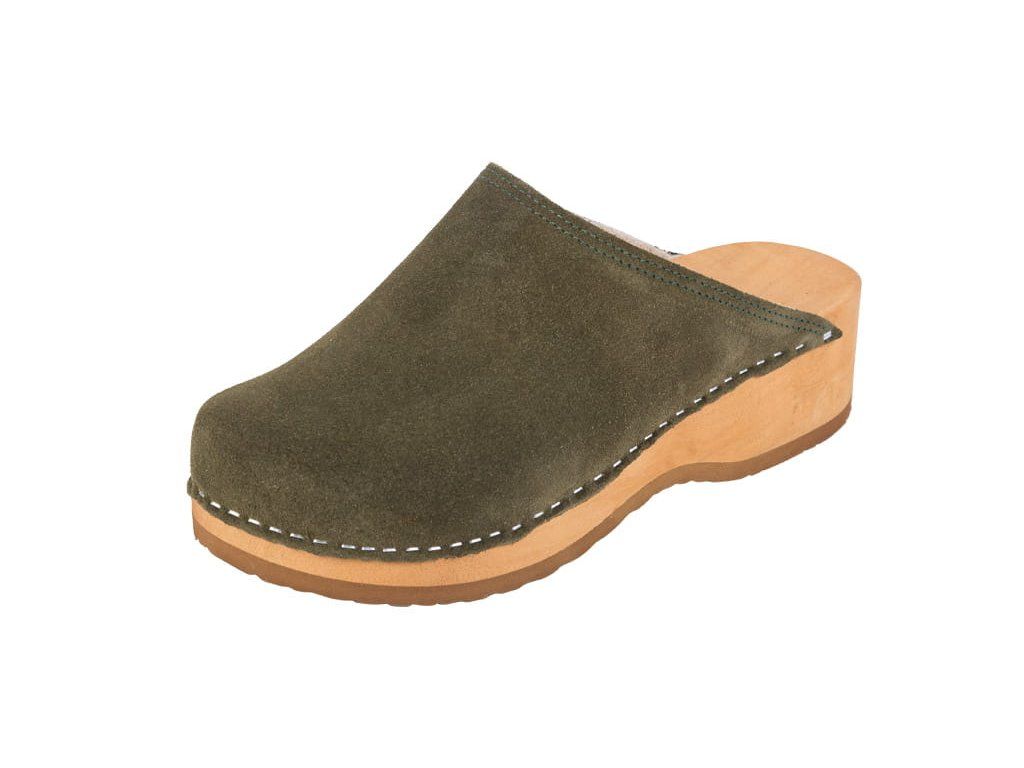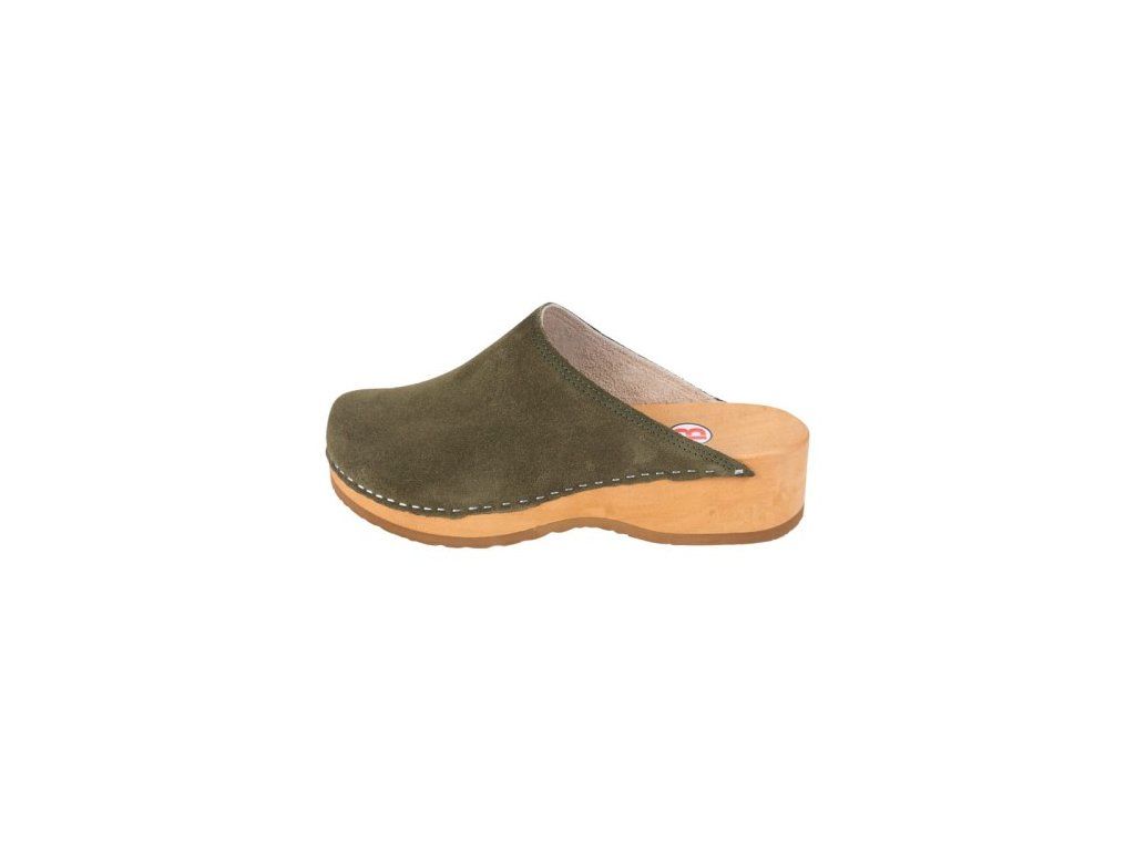A kényelmes egészségügyi klumpa valódi bőrből és könnyű hársfából készült. A formázott talp segít korrigálni a lúdtalpat. A fa talpbetét használat közben nem deformálódik, és elősegíti a helyes testtartást.