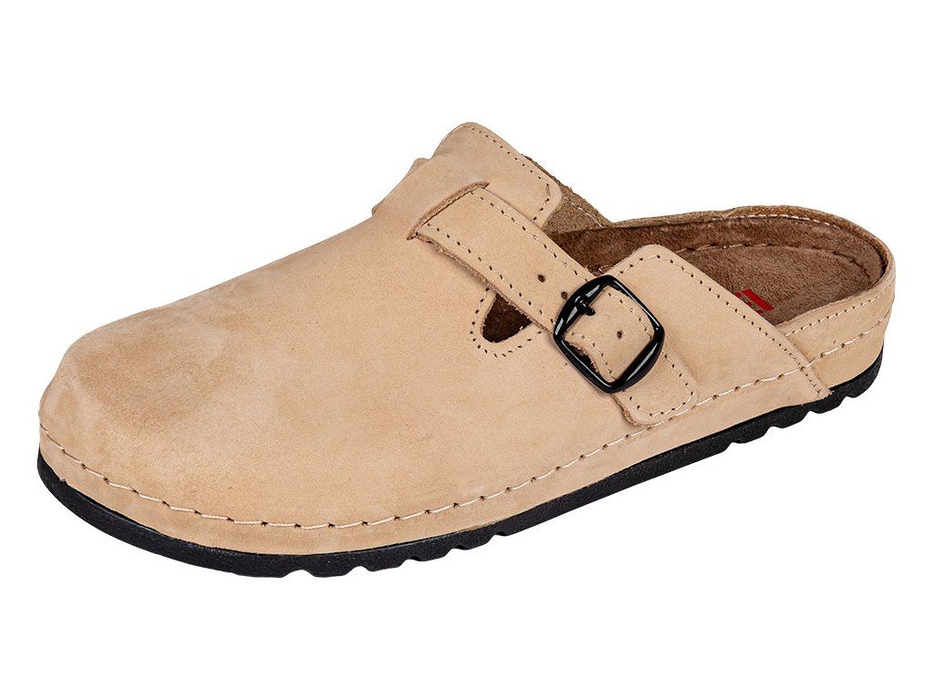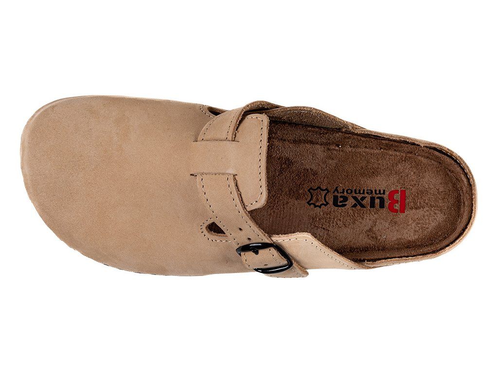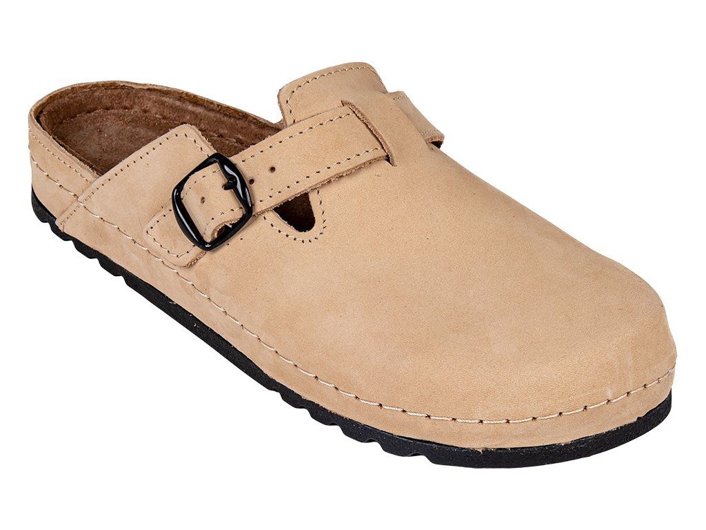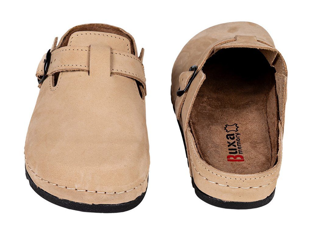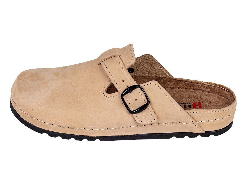 A puha nubuk bőr bélés növeli a kényelmet és segít elvezetni a felesleges nedvességet. A megemelt szélek megakadályozzák a láb elcsúszását és védik a lábujjakat járás közben. A rugalmas, ütéscsillapító anyagból készült talp csökkenti a mikrorezgéseket, ezért a papucs ideális munkához, otthonra, kertbe vagy mindennapi viseletre.
