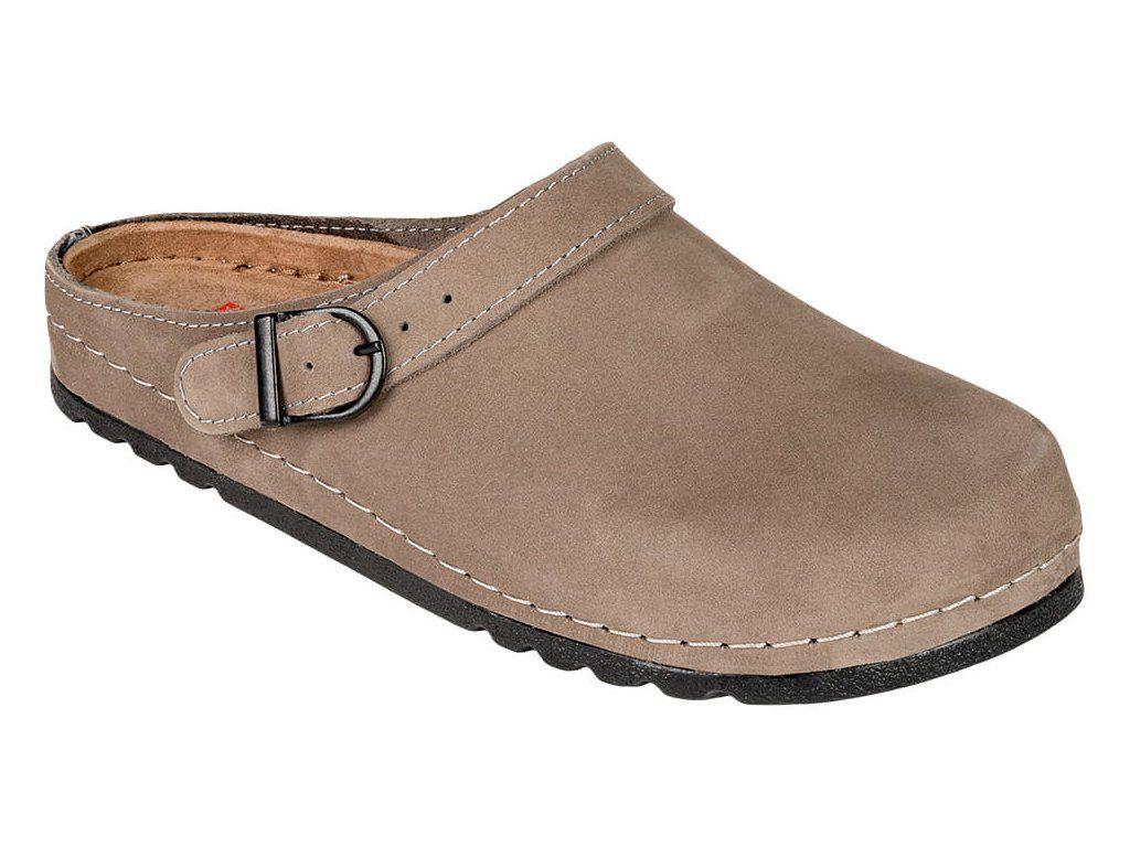 Bőr egészségügyi papucs BZ130 anatómiai kialakítású talppal és memóriahabbal, amely tökéletesen alkalmazkodik a láb formájához. A kézzel varrott felsőrész nagy tartósságot biztosít, a puha velúr bélés növeli a kényelmet, az állítható pánt pedig lehetővé teszi a lábbeli viselését saroktámasszal is. A csúszásmentes gumitalp biztonságot nyújt egész napos használat során is.