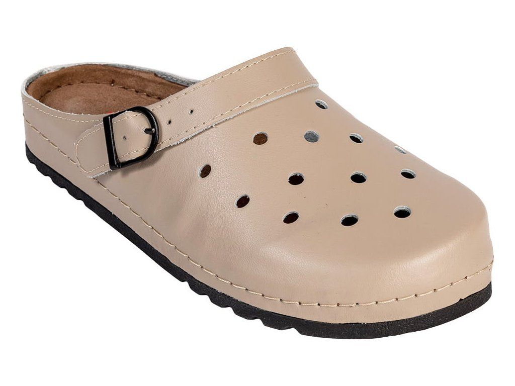 Bőr egészségügyi papucs BZ130 anatómiai kialakítású talppal és memóriahabbal, amely tökéletesen alkalmazkodik a láb formájához. A kézzel varrott felsőrész nagy tartósságot biztosít, a puha velúr bélés növeli a kényelmet, a mozgatható pánt pedig lehetővé teszi a lábbeli viselését saroktámasszal is. A csúszásmentes gumitalp biztonságot nyújt egész napos használat során is.