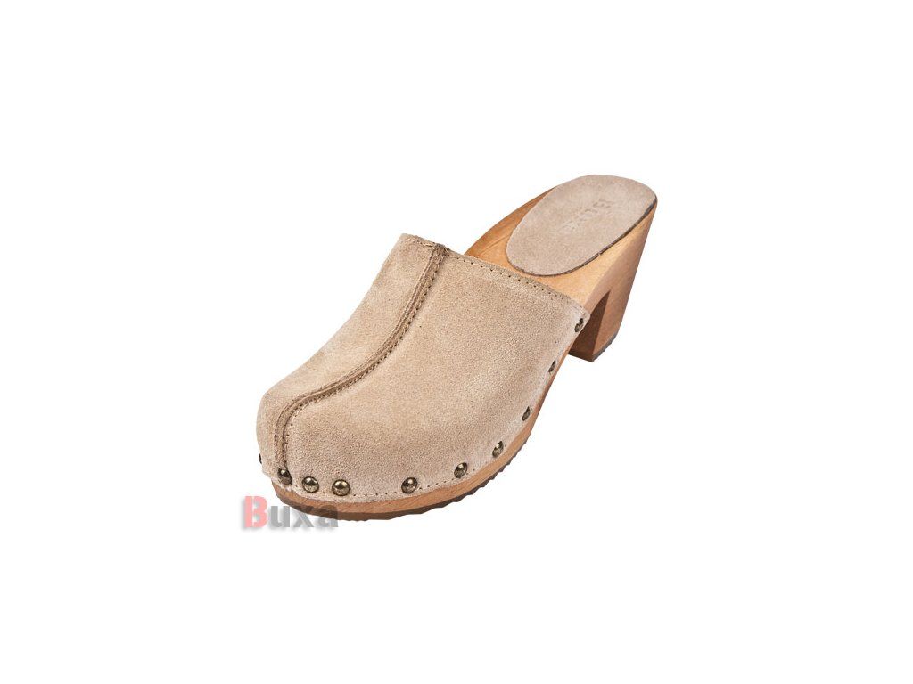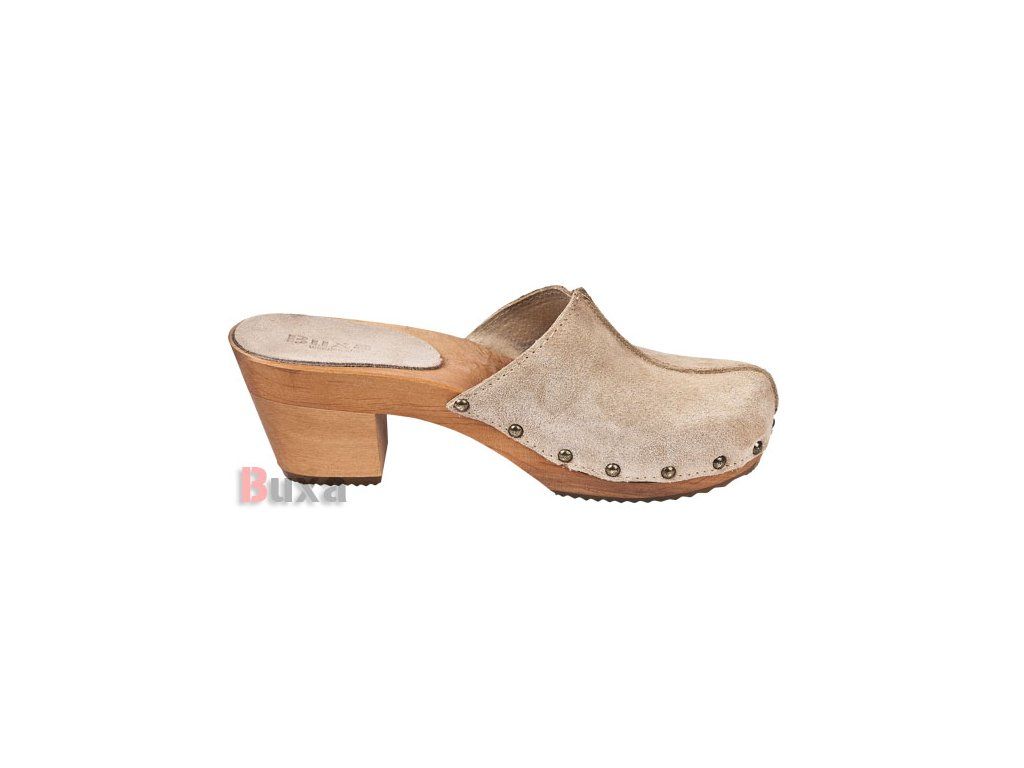 A klumpa kiváló minőségű természetes bőrből készült, amelyet speciális fólia borít, így biztosítja a könnyű karbantartást, a tartósságot és a levegő szabad áramlását. A talp égerfából készült, amely jó tulajdonságokkal rendelkezik az anatómiai forma megőrzésében, és lehetővé teszi a hosszú órákon át tartó aktivitást a lábak elfáradása nélkül. A fa és a bőr tulajdonságai biztosítják a megfelelő nedvszívást, így a láb nem izzad be. A fa lábbeli további előnye, hogy nem deformálja a láb boltozatát, így a láb anatómiai formája megmarad. Hosszú élettartammal és alacsony beszerzési költséggel rendelkezik. Allergiások számára is megfelelő. Természetes anyagokból készült.