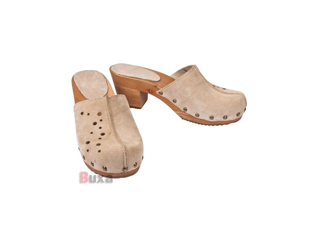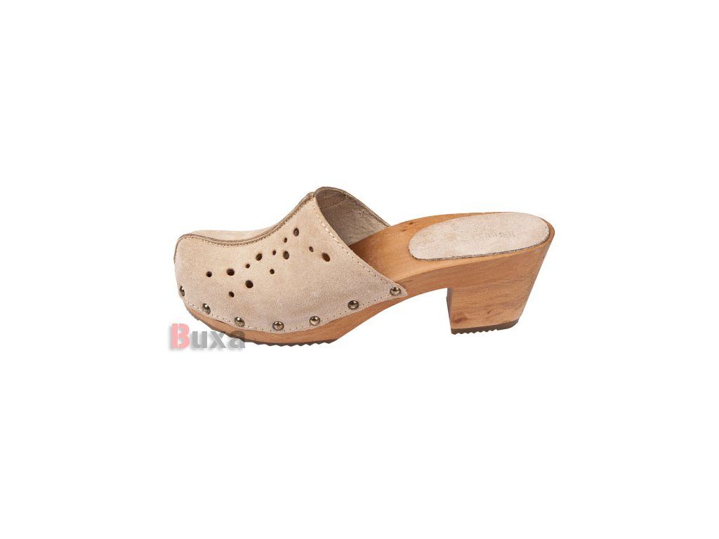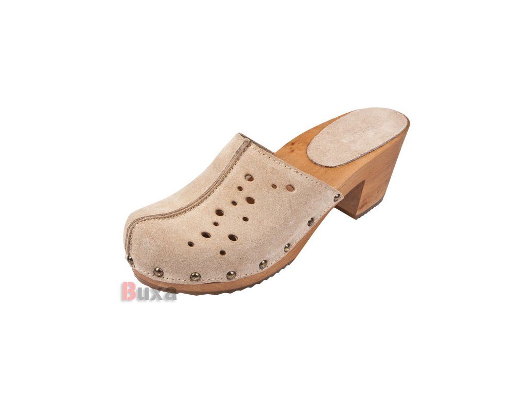 A klumpa kiváló minőségű természetes bőrből készült, amelyet speciális fólia borít, így biztosítja a könnyű karbantartást, a tartósságot és a levegő szabad áramlását. A talp égerfából készült, amely jó tulajdonságokkal rendelkezik az anatómiai forma megőrzésében, és lehetővé teszi a hosszú órákon át tartó aktivitást a lábak elfáradása nélkül. A fa és a bőr tulajdonságai biztosítják a megfelelő nedvszívást, így a láb nem izzad be. A fa lábbeli további előnye, hogy nem deformálja a láb boltozatát, így a láb anatómiai formája megmarad. Hosszú élettartammal és alacsony beszerzési költséggel rendelkezik. Allergiások számára is megfelelő. Természetes anyagokból készült.