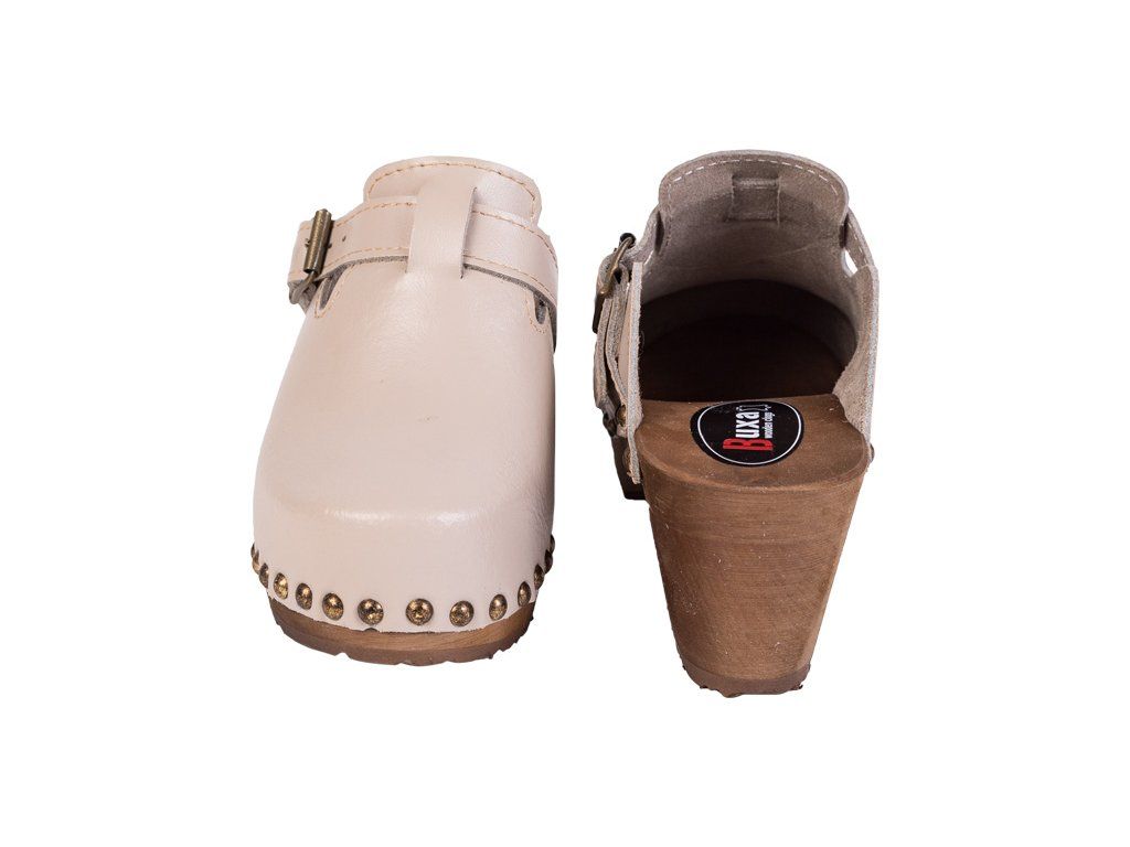 A klumpa kiváló minőségű természetes bőrből készült, amelyet speciális fólia borít, így biztosítja a könnyű karbantartást, a tartósságot és a levegő szabad áramlását. A talp hársfából készült, amely jó tulajdonságokkal rendelkezik az anatómiai forma megőrzésében, és lehetővé teszi a hosszú órákon át tartó aktivitást a lábak elfáradása nélkül. Állítható pánttal!