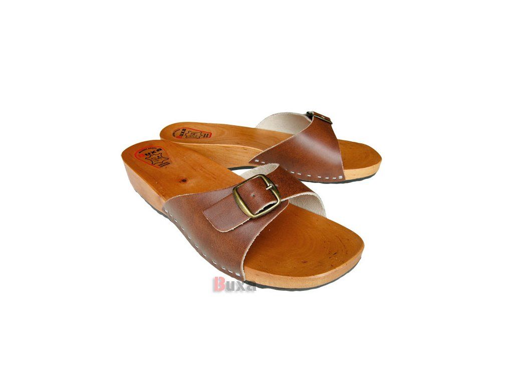 A férfi papucs kiváló minőségű bőrből készült, míg a talp könnyű égerfából készül. A papucs nagyon jól formázott, állítható pántokkal rendelkezik. Medencéhez vagy vízhez is megfelelő. A fa lábbeli további előnye, hogy nem deformálja a láb boltozatát, így a láb anatómiai formája megmarad. Hosszú élettartammal és alacsony beszerzési költséggel rendelkezik.
