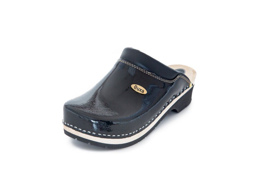 FPU10 Fekete, lakkozott egészségügyi, ütéscsillapító talpú klumpa