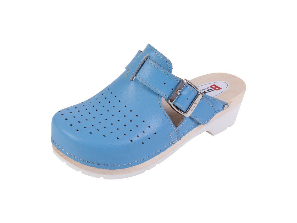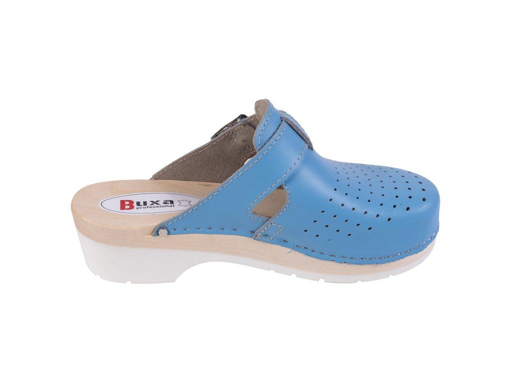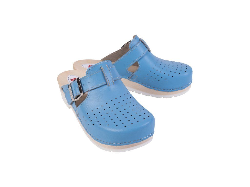 Az FPU21 perforált klumpa egészségügyi személyzet számára készült. Gyártásához kiváló minőségű természetes bőrt használnak, amely speciális bevonattal van ellátva, így jelentősen megkönnyíti a tisztítást és biztosítja a megfelelő higiéniát. A fa talp anatómiai kialakítása a felsőrész állíthatóságával kombinálva stabil és kényelmes tartást biztosít a lábnak, elősegíti a helyes testtartást, és hozzájárul a gerinc és az ízületek terhelésének csökkentéséhez.