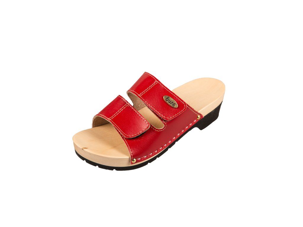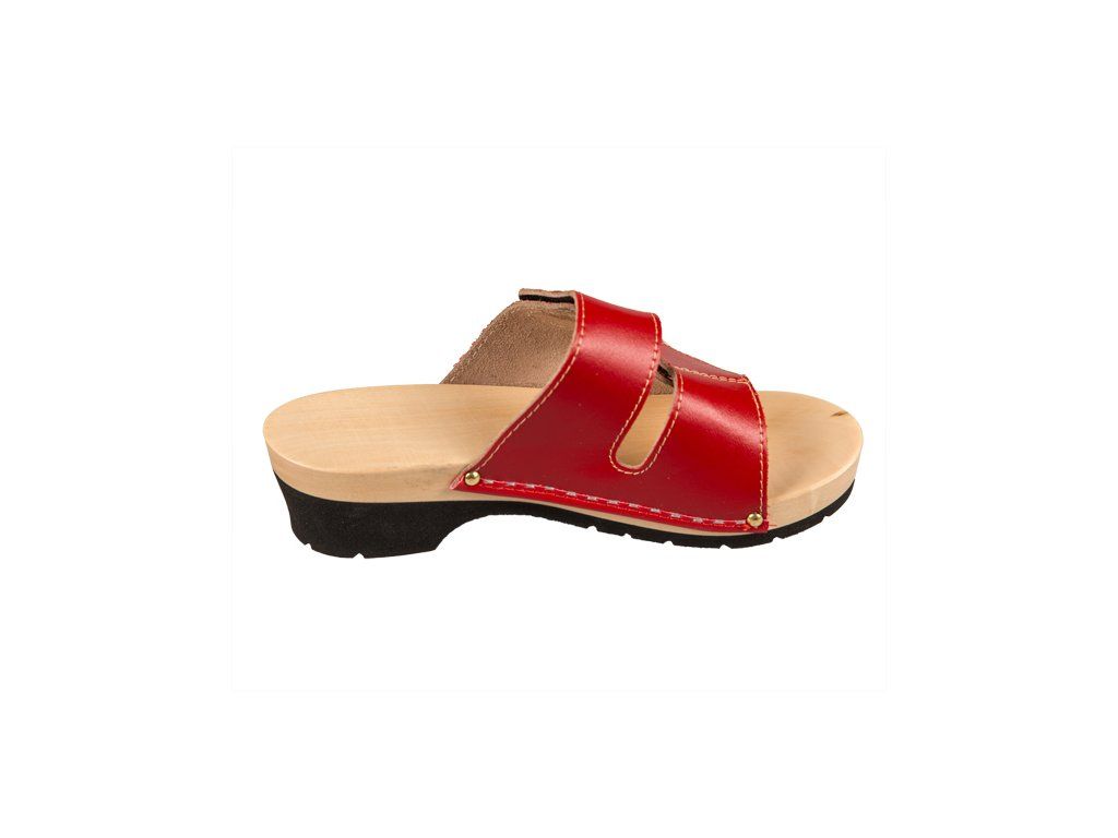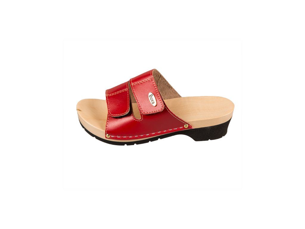 Egészségügyi, rugalmas talpú KPU1 papucs természetes fából és kiváló minőségű természetes bőrből készült, amelyet speciális bevonat fed, így a tisztítás és a karbantartás jelentősen egyszerűbb. A klumpa szélessége tépőzár segítségével állítható, ezért szélesebb lábra is megfelelő.