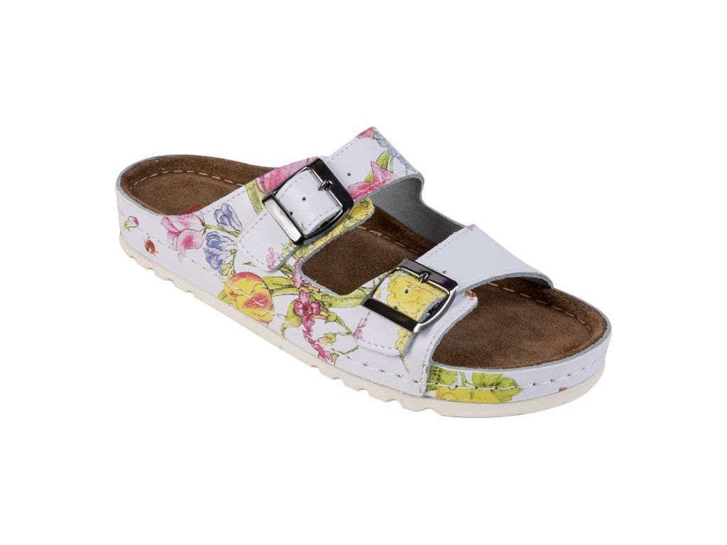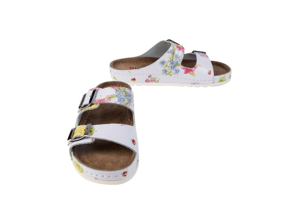 MEMORY BZ110 fehér virágmintás egészségügyi papucs