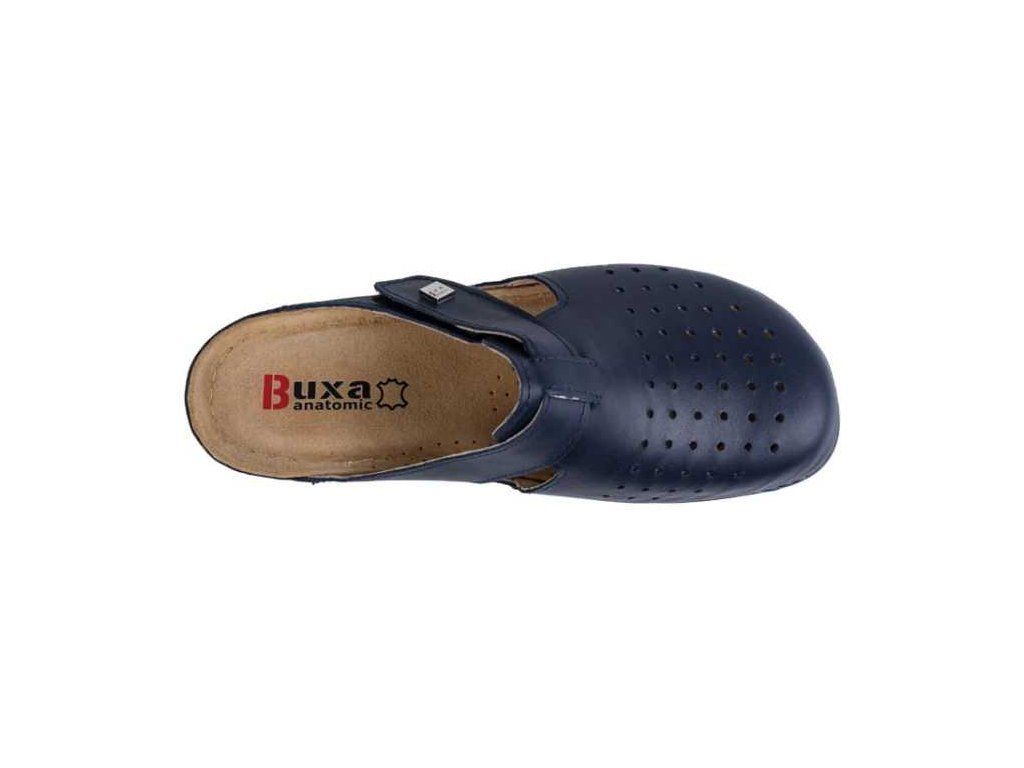 A Buxa ANATOMIC sorozatba tartozó BZ241 modell munkához készült egészségügyi lábbeli, amely Lengyelországban készült, kizárólag lengyel eredetű bőrből. A felsőrész és a belső bélés puha borjúbőrből készült. A cipő perforációval – apró nyílásokkal – rendelkezik, amelyek biztosítják a láb megfelelő szellőzését. A modell tépőzáras pánttal állítható szélességet kínál, valamint egy sarokra rögzíthető kiegészítő pánttal is rendelkezik, amely lehetővé teszi a lábbeli még jobb alkalmazkodását a láb egyéni igényeihez. A szandál többféle színben elérhető.