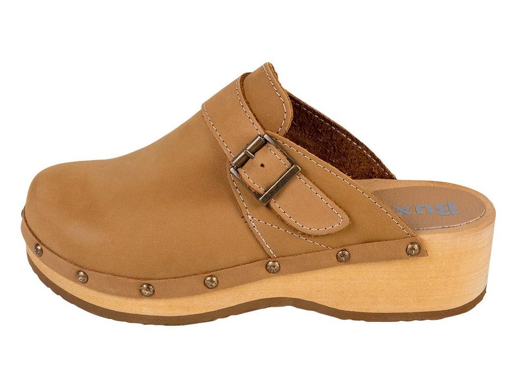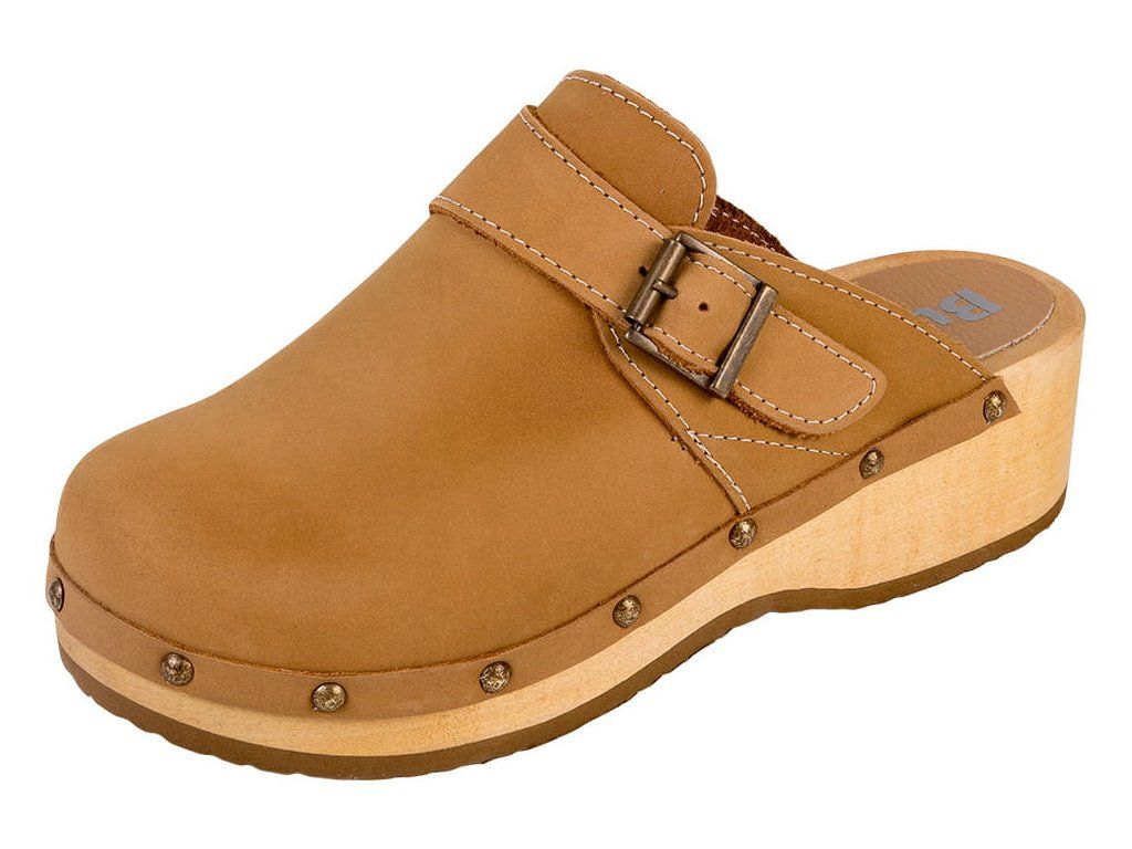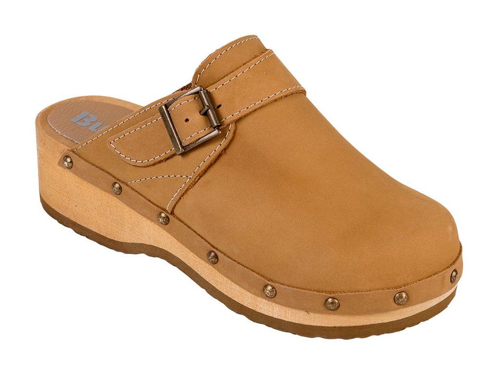 Kényelmes klumpa puha természetes bőrből és könnyű hársfából készült talppal. Az anatómiailag formázott talpbetét támogatja a láb hosszanti boltozatát, stabilizálja a sarkat és segít tehermentesíteni az ízületeket járás közben. A légáteresztő nubuk vagy velúr bőr természetesen alkalmazkodik a láb formájához. Az állítható pánt pontos illeszkedést biztosít. A csúszásmentes, perforált gumitalp csillapítja az ütődéseket és megakadályozza a csúszást. CE és EN-20347 tanúsítvánnyal rendelkezik.