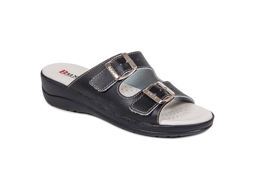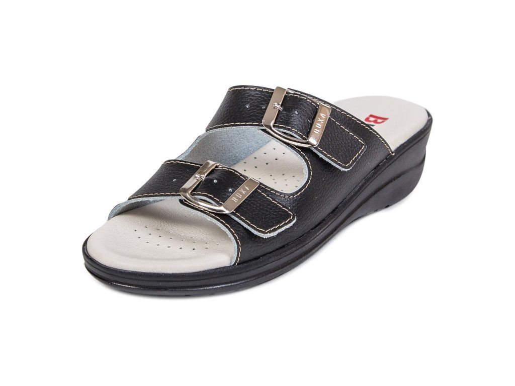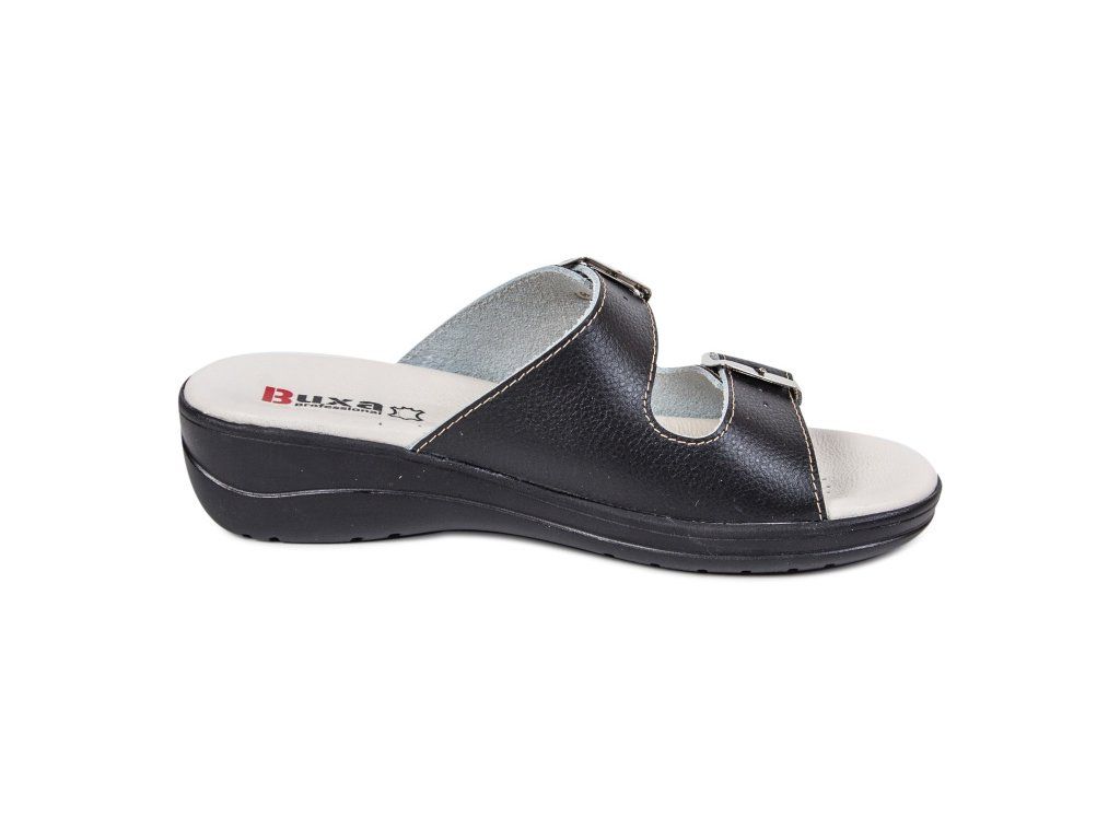 Női teljes bőr egészségügyi papucs, a sarokrészben elhelyezett ütéscsillapító betéttel, amely járás közben tompítja az ütéseket. Az egyedülálló, a talp sarokrészében található amortizációs betét csökkenti a gerinc és az ízületek terhelését, és növeli a járás komfortját. Ez a modell puha, anatómiailag formázott talpbetéttel rendelkezik, amely támogatja a haránt- és hosszanti boltozatot.