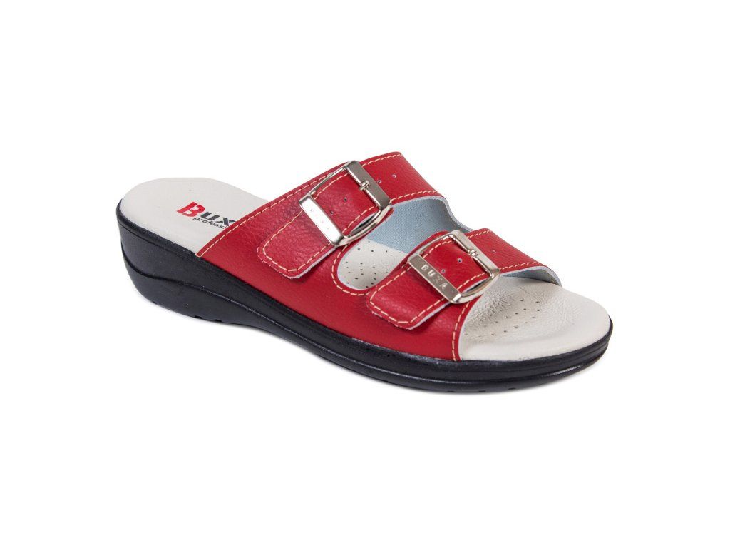 Női teljes bőr egészségügyi papucs, a sarokrészben elhelyezett ütéscsillapító betéttel, amely járás közben tompítja az ütéseket. Az egyedülálló, a talp sarokrészében található amortizációs betét csökkenti a gerinc és az ízületek terhelését, és növeli a járás komfortját. Ez a modell puha, anatómiailag formázott talpbetéttel rendelkezik, amely támogatja a haránt- és hosszanti boltozatot.